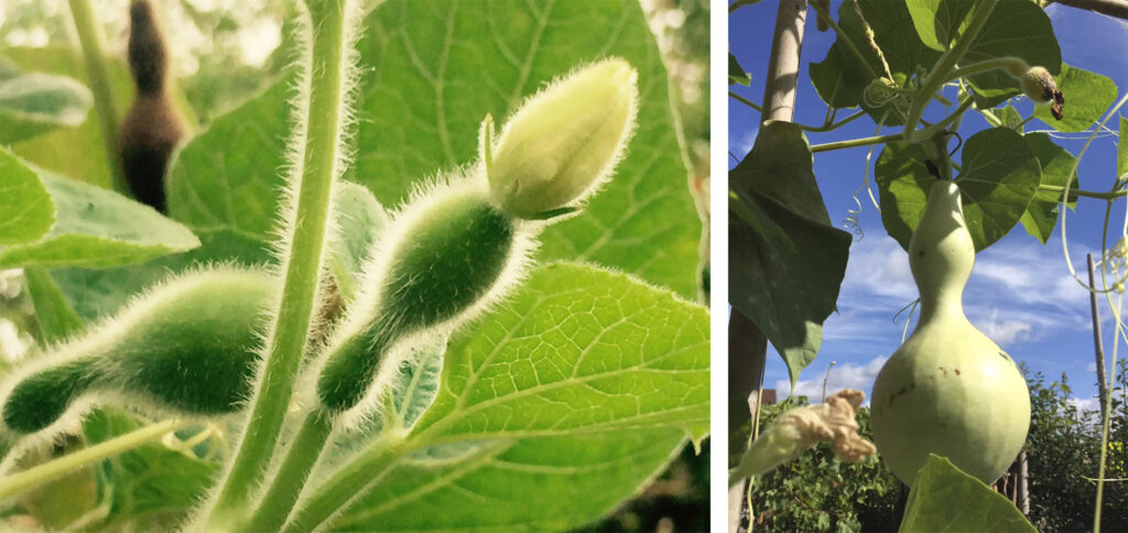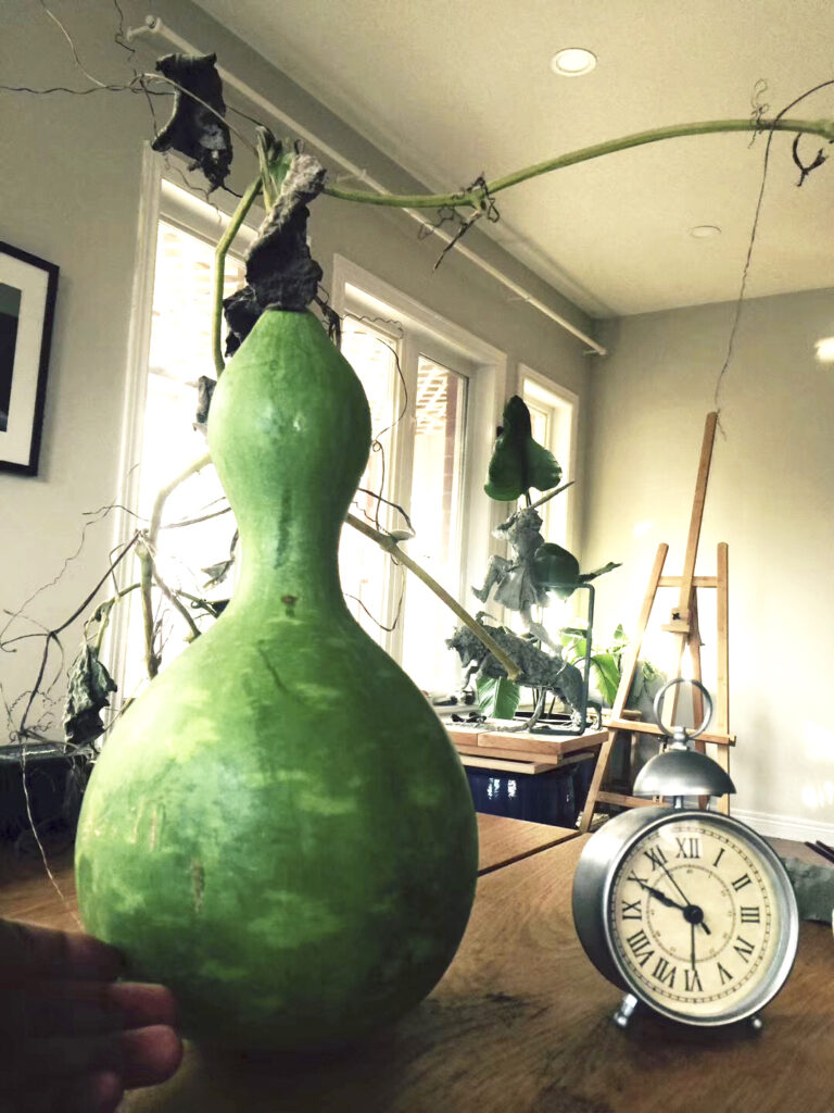 I always want to paint gourds, carve gourds, so I planted a gourds in my. The gourd growing in the yard looks like a magic plant. It changed every day, and the growing gourds somewhat resembled  the human body, which was very interesting. In Chinese culture, people often say that the gourd is precious and contains spiritual energy.